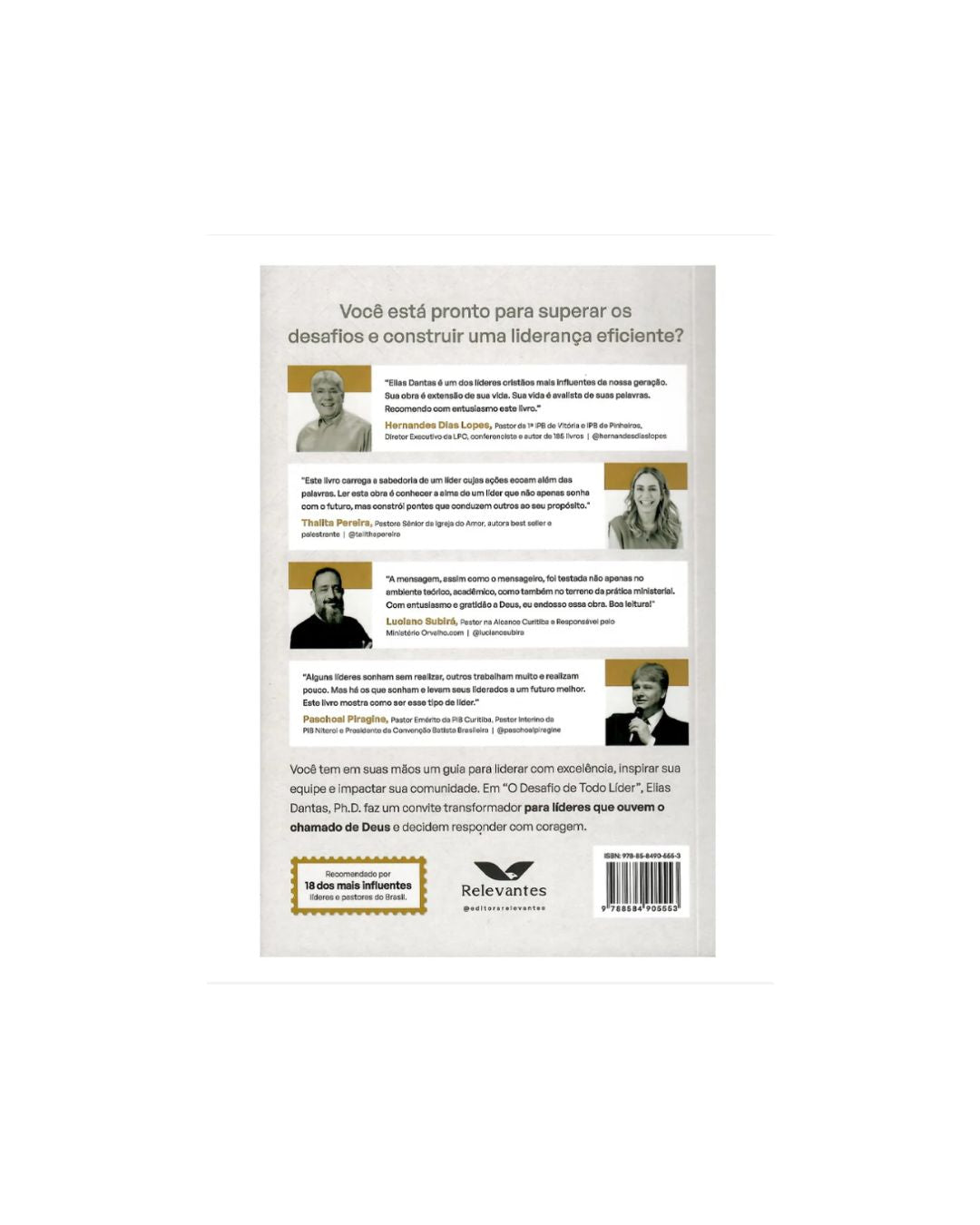 Em O Desafio de Todo Líder, o pastor Elias Dantas apresenta soluções práticas para as principais dificuldades enfrentadas por líderes cristãos na atualidade. Da clareza do chamado ao crescimento pessoal e espiritual, o livro oferece direcionamento sólido para quem deseja liderar com propósito e excelência.